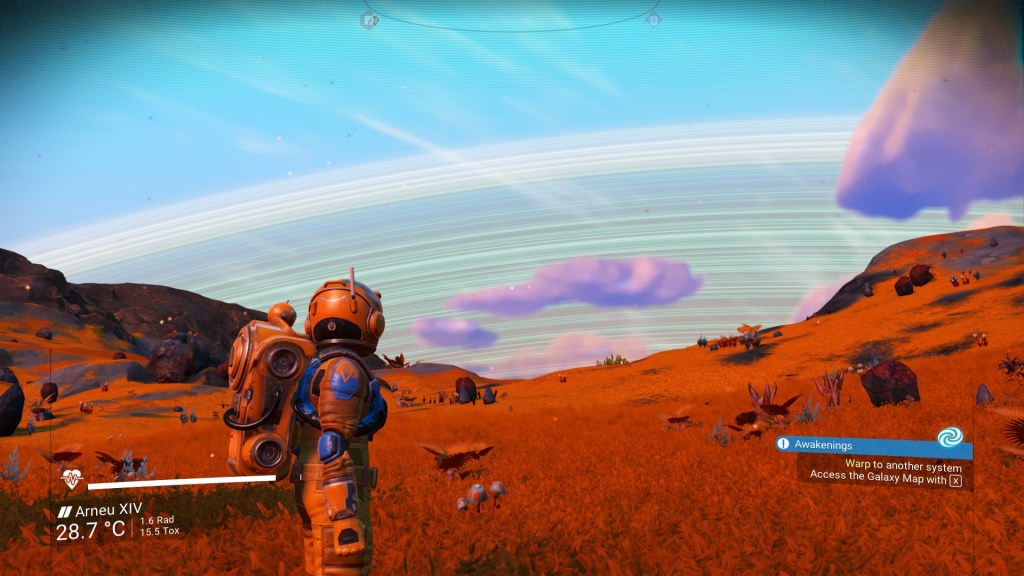 So I originally started playing these games at about the same time. I was struck by their similarities, but – more specifically by the fact that they were so different despite their obvious shared features. They are sharply, aggressively different to each other, in the way that only very similar things can be. Today I want to focus on the way that each game thinks about space. We’ll start with No Man’s Sky.