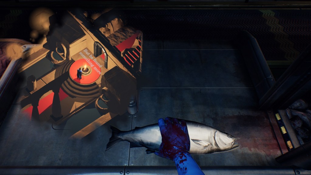 That said, I think the scene in Finch is better to play, because you’re able to more or less automate the mouse movements – automate the fish-chopping – and focus your attention on the fantasy world, which has text popping up, and this whole choose-your-own-adventure boat thing, and – it’s fun and interesting to play, and the way in which you automate and totally forget about the fish stuff reflects the way in which Lewis drifts away from that reality as well. By contrast, in The Wall, I think the firewood thing ultimately becomes a bit of a drag. It’s distracting, you’re never able to focus on enjoying the dialogue – I mean, aesthetically I think that’s appropriate, I think it’s fitting that it’s not a totally satisfying type of gameplay – it speaks to that split attention that’s a reality of the workplace – but it also feels like it grew out of my inexperience as a designer. The fact that janky gameplay was thematically convenient doesn’t negate the fact that right now I’m just not super good at game design. I only played Edith Finch after launching my games, and playing the Lewis sequence was like watching someone do everything I’d done but better.
