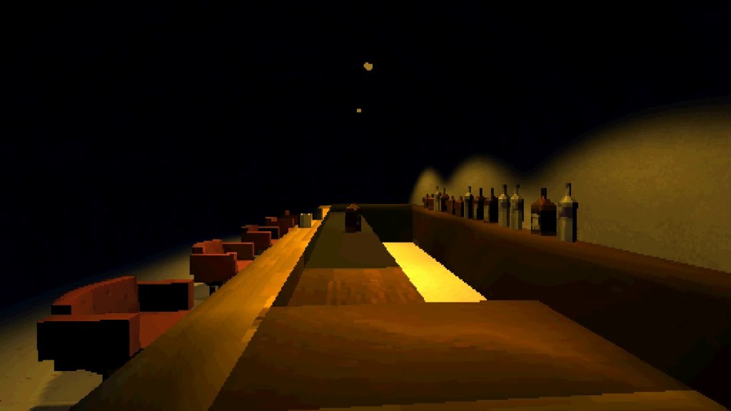 For most of the game, it’s almost like a carnival ride through the cult, showing all these horrific things in a narrative that essentially amounts to ‘wow, cults are bad’. What’s special about the end sequence is that it moves away from the atrocity slideshow and focuses on the psychology of Lilian, the main character – on why she fell in with the cult, and how the behaviour that led her there also impacts the rest of her life. For example, we learn that Lilian wasn’t able to find work after university, and went backpacking around Europe for a year instead. In one of her memories, work is thematically linked with religion, suggesting something about why Lilian wasn’t able to find work, and also why she wasn’t able to commit to the cult and to her own death. This particular memory shows her chatting with a guy in a bar, Tim. She explains that she went off backpacking, and Tim says: