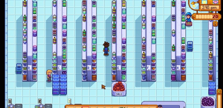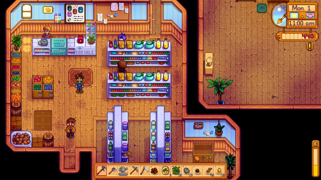 Joja Corporation is the game’s stand-in for the soulless corporate sector. You’re working for them at the start of the game, and after you quit and move to Pelican Town, you find they have a presence with their supermarket chain, JojaMart. Within the context of the fantasy, they represent everything you hate about your actual job. They’re evil and bad, and you have to kick them out of town before they ruin everything. Fight off the dirty corporates, defend local businesses, and enjoy your beautiful farm. However, from the perspective of food production and surplus labour, supermarkets on the whole are pretty beneficial. They make the consumer-end of food production cheap and accessible, and have a relatively low labour requirement. For example, having food pre-packaged and sitting on the shelf means you can just walk in and grab it, rather than needing a shop assistant to bag you up your two hundred grams of spaghetti. Supermarkets lower the amount of labour needed to produce and distribute food, creating more surplus labour within society, which in turn (at least in theory) can be used for the benefit of humanity as a whole.