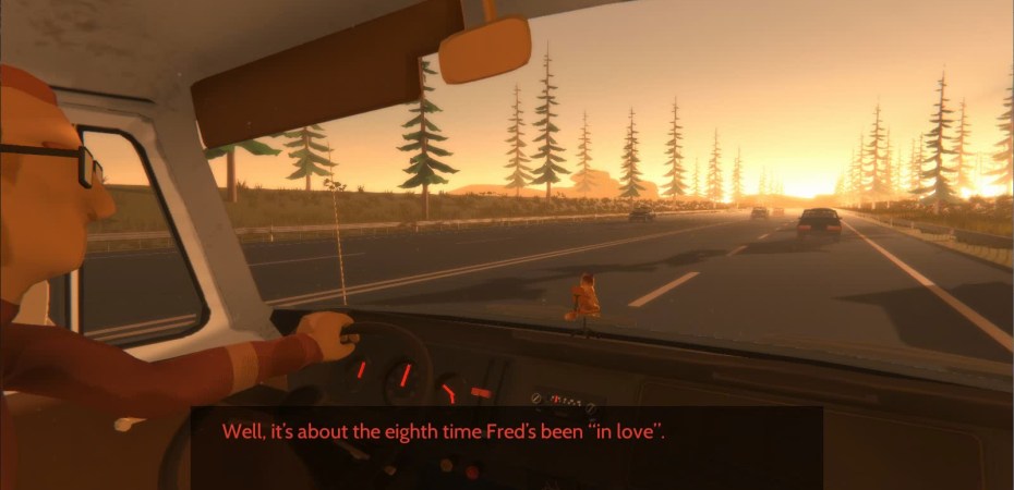 And let’s be really explicit here about what’s going on. At the start of the game, the characters in the van are excited to go out on this trip. They’ve surrounded themselves with the paraphernalia of their glorious student days, and everything is grand. Over time, we learn that the characters just aren’t those people any more. They aren’t eighteen. They’ve outgrown that juvenile stage, but they’re still stuck in the same van. The environment doesn’t match their growing comprehension of their own mental state, and it’s excruciating. It makes you itchy, it makes you want to crawl out of your own skin – because you see these people just becoming increasingly aware of how inappropriate their surroundings are. In Northbound, the meaning of the environment changes as the player becomes more aware of what’s going on. The markers of joy – the stars on the ceiling, the sports team flag, the little string of LED lights – become bitter, taunting reminders of a state that no longer exists. And there’s no privacy, either. It’s just three friends (and one semi-unwelcome girlfriend) stuck in a cramped, tiny little van, surrounded by the detritus of their previous lives and lapsed relationships. It’s beautiful.