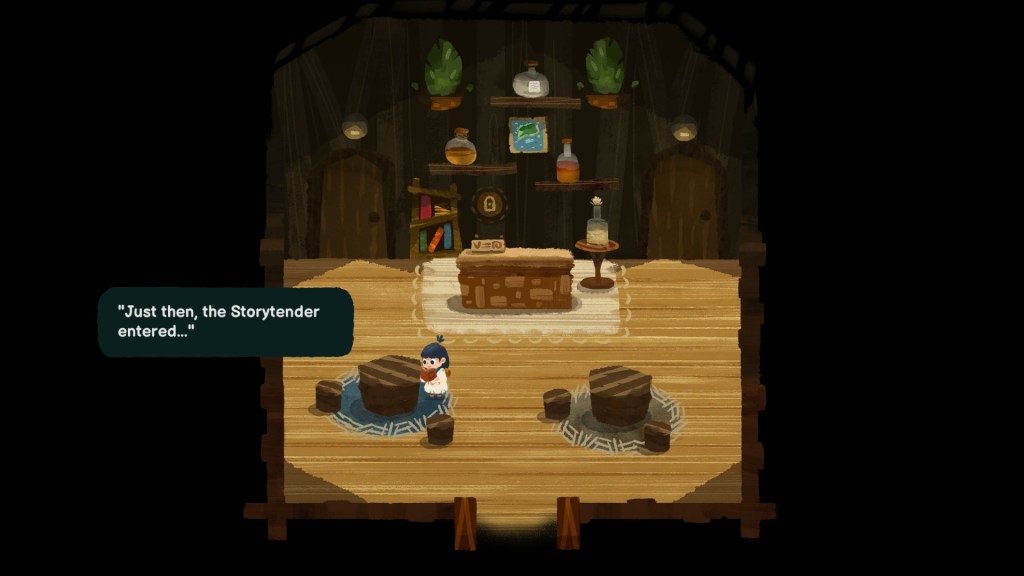During one early level, for instance, you’re looking for a bunch of sheep. This kid tells you that one of the sheep, Penelope, tends to hide in a spot surrounded by snowy flowers on all sides. If you set up your map in such a way that tiles with snowy flowers surround one empty central spot, a new tile will burst into existence in that gap – and that’s where Penelope will be. Where other games would have you go and hunt down these landmarks in a stable external reality, Carto has you simply rearrange signs of flowers on your map so that the landmarks are arranged as described. And then, because the area exists on your map, it becomes accessible in the world as well. Reality is determined by how it’s represented. It’s pretty meta for what otherwise amounts to a puzzle game stylized in the manner of a kids’ picture book – I mean, at one point you find a book telling the story of your adventure, right up to the bit where your reading is interrupted by a new character entering the room. I mention Paul Auster’s City of Glass one time and-