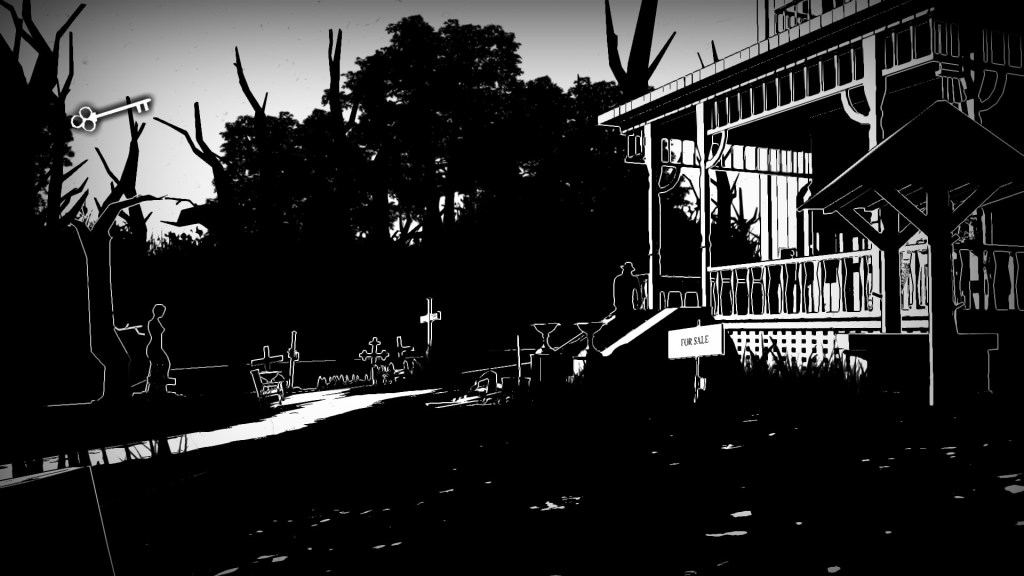 So White Night is a good case study for our question. Visually it looks the part. In terms of plot, it has a detective with hat and coat stumbling around lighting matches, and a mysterious woman who sings at a jazz club – yeah, sure, noir. In terms of gameplay, it’s similar to Resident Evil: you have to find various keys and use them to open doors and overcome puzzles. At times, it’s frankly a little annoying. It’s not always totally obvious what you’re expected to do – I understand why people didn’t make it through the first chapter. The puzzles can sometimes be associative rather than logical, in a manner reminiscent of point and click adventure games. The clearest example is the game’s first puzzle, in the tutorial. You arrive at the mansion and discover it’s locked, and must search for a key. You can poke around a well and a barn, and next to the mansion’s front door there’s also a marble arm in a box. The arm has come off a statue in the graveyard, which has been recently moved – and if you move it back, light falls on the hidden front door key. There is a logical connection between the arm and the statue, but there’s no instigating reason to assume either of them are connected to the key. That evidence is only supplied after the puzzle is solved. The arm is by the front door, but why track down where it came from? Why should you think it relates to the key? It’s just slightly weird logic – it’s associative, drawing mainly on the proximity of the arm to the door.