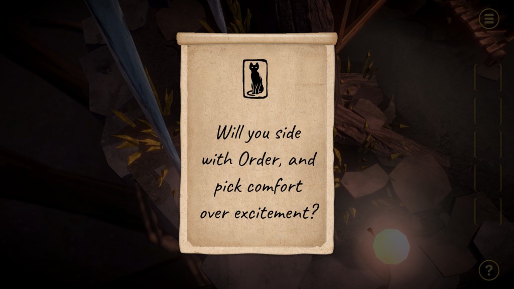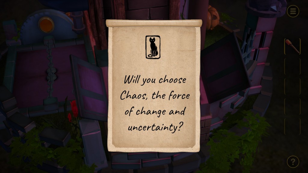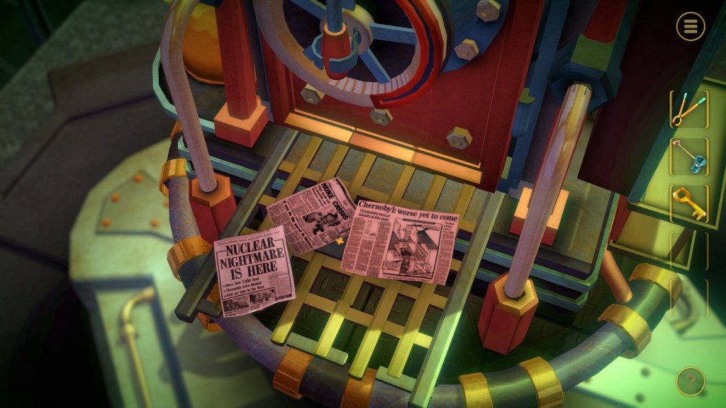 We can see these concepts coalescing around the video game’s locked door. The virtual space of video game worlds seem emblematic of the march of science and technology into the 21st century. They are projections of scientific and mathematical power, the children of knowledge that put humans on the moon. As players, we are in a sense heirs to that legacy – in a very whimsical and low-stakes sort of way, but heirs nonetheless. I don’t want to overstate the case: in some ways, Doors: Paradox doesn’t really have a lot going on. It doesn’t have a plot, or characters, or anything like that. I guess there’s some stuff about the conflict between order and chaos. Order is associated with comfort and stability, while Chaos is associated with change and uncertainty. Both are part of the trajectory of humankind, part of the balance that we maintain as we learn. We have to step into the chaotic unknown in order to discover new things, but if chaos gets out of control, it can become destructive. You can find newspapers in the game featuring nuclear disasters like Chernobyl, reminding us that the unbalanced pursuit of knowledge can lead to devastating results. And yet pure order, with no growth, with no chaotic discovery – really that’s just stagnation. The two must exist in tension, in paradox. We progress our knowledge within the balance of these forces. Throughout Doors: Paradox, and throughout other games like Resident Evil, we are presented with an opportunity to learn, to discover. Understanding in these games is transgressive. It requires us to be curious, to go beyond, to cross over the threshold. Their nature as video games affirms the strength of their promise: as products of technological and scientific revolution, they are in themselves evidence of the achievements available to humanity. That heritage belongs to you too, they say. You just have to find the key.