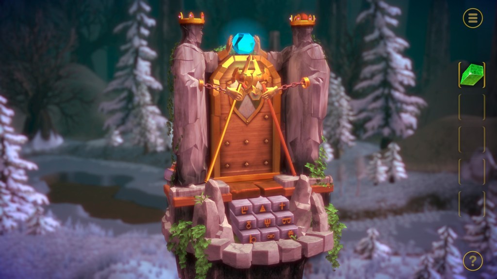 Doors: Paradox is a 2022 puzzle game where you interact with these little 3D door dioramas. Each door is locked, and you have to figure out how to unlock it. It’s in the realm of escape room, I guess, but it’s also this very low-key exercise where you just sort of fiddle around with the 3D model. You spin it around and pull levers and admire the flagstones, and some of them occasionally do things like shoot electricity between pylons. As a game, Doors seems to distill some of the qualities that we’ve identified with Resident Evil. There is a locked door, and a series of conditions set around passage, and the player must pay close attention to the specific material nature of the environment in order to move forward. It feels ritualistic. It feels like something is being enacted here, something that sits at the core of video games as a medium.