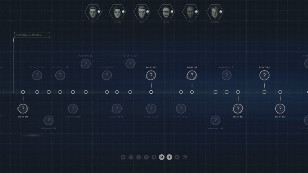 The game’s premise is that you’re some sort of time detective, tasked with protecting the timeline from corruption and interference. Your latest job is a house fire in England where six people died. You have to fiddle with the timeline until they make it through the night. Although that sounds like the pitch for a game dripping with gadgets and gizmos, in practice it’s a very low-key, intimate game about relationships and change. It’s the video game equivalent of a one room film: you spend the game inside the charred husk of a house, wandering from room to room and tweaking conversations and key decisions to unlock other moments further down the timeline. You have a little machine that shows you grainy figures from the past, talking and interacting, living their lives projected over the backdrop of this smoky blackened house, and honestly you mostly just listen. Each of the six main characters is at a turning point. Some of those turning points are major life events, and some are the smaller, softer decisions that we only really recognise in retrospect. Ben is a doctor who’s applied to work overseas. He’s trying to figure out how to tell his wife, Jenny. For her part, Jenny has just fallen pregnant, and hasn’t yet found a way to tell Ben. College student Neil is coming to terms with an anger problem, and his older, married sister Linda has moved in for the week. She’s taking some time away from her husband – they might be getting a divorce. Tom, the landlord, is horny and lonely, and he’s worried about his mum. Raquel is an art major who hasn’t let go of her past. The way that each person deals with their turning point shapes their ultimate outcome. If Neil doesn’t deal with his anger, on the night of the fire he will have been out drinking and brawling. He’ll be passed out in his room when the smoke gets him. If Tom remains isolated, he’ll trip down the stairs in the dark and break his neck. The game uses the night of the fire and the six fatalities to dramatise the risk and potency of each person’s turning point. When you make a big decision, it says, that could be it. It could be the big one – could determine the way things go for the rest of your life. Deal with your anger, or you’ll die in a fire.