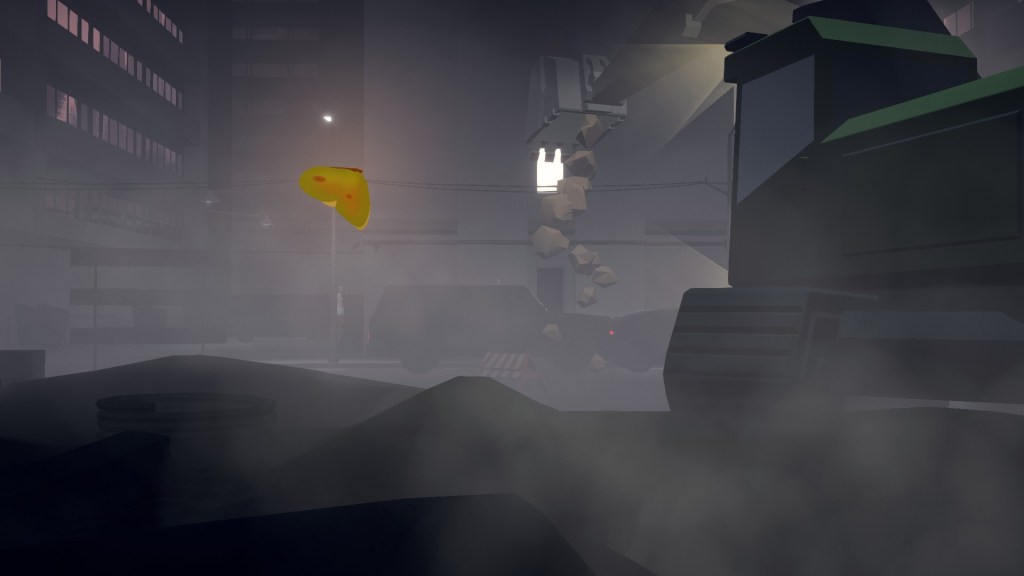 Imagine an industrial building site, all diggers and dull earth. It’s sunrise, but the thick purple air is more readily attributed to the pollution burping out of honking machinery. The earth is subject to the various impacts of machinery. Trucks leave their heavy imprint, diggers tear and rend. Commuters trudge past on the other side of a chain-link fence. Does the fence keep them out or is it penning them in? Imagine a butterfly – the only remnant of the vanishing natural world, quite literally displaced by the heavy machinery of industrialisation. Imagine it yellow, like a daisy, flittering about between corrugated fences and palettes of dirty metal. It’s fragile and gentle, a little sliver of beauty. It casts light on the face of a worker, and he pauses for a minute to watch it go by. He is touched. Now imagine the butterfly sucked in through a machine’s air vent and shredded. Surprise! That’s bathos. It’s also a scene in Mosaic, a 2019 game from developers Krillbite Studio.