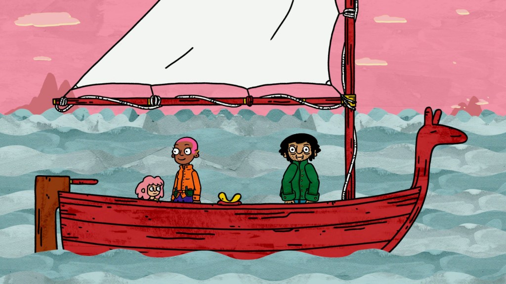 Welcome to Elk is a 2020 game by Triple Topping, a Denmark indie development studio that is now sadly closed. It’s a weird little narrative game where you go to an island and meet a bunch of locals, in the vein of Mutazione or ‘returning home’ narratives like Night in the Woods or Lake. Graphically, it’s quite stark. It’s presented in a hand-drawn style, almost like one of those hidden object games. Straight lines aren’t perfectly straight: they look as if they’re drawn with a free hand, with curves and imperfections. There are pockmarks and blemishes across most surfaces, which give a sense of texture, but which also speak to the drawn line of the pen. For the most part, the game is presented in black and white. If something’s interactive, it’s given in colour – and the colours are often acid-washed variations. The wood in the carpenter’s studio isn’t brown, it’s pink. The fireplace in the home of Frigg, the main character, is an acidic green on green. Frigg’s fridge is yellow and pink, and the frame of her front door is light blue. It’s this slightly psychedelic colouring, all cast against a black and white background that looks like a blank illustration in a colouring book. The animation style is similarly bizarre. Characters move as if they’re being puppeteered – there’s nothing smooth or organic about it. It’s almost QWOP movement. Limbs rotate around circular joints at elbow and knee. Walking is a jumble of spinning tubes, more like cycling than footsteps. It’s not crude, because crude implies a certain roughness of technique. It’s artificial. It’s illustrated, weirdly coloured, puppeteered. It’s not blunt – it’s often quite delicate – but it’s also clearly not in any sense realistic.